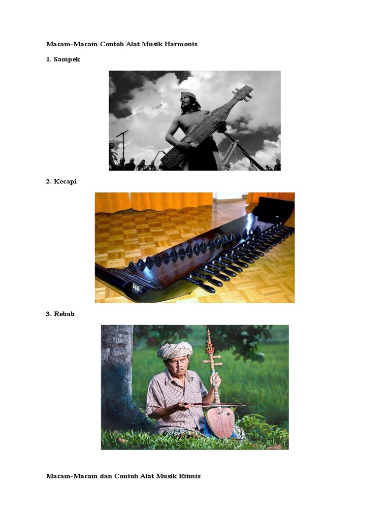 Nah, jika alat musik melodis ini mempunyai nada dan irama. Indonesia memiliki banyak alat musik tradisional yang termasuk ke dalam alat musik melodis, salah satunya adalah sasando. Materi utama yang digunakan adalah bambu yang dibentuk seperti tabung panjang. Cara memainkan bonang yaitu dengan memukul atau menabuh pada pencu atau bagian atas yang menonjol. Di dalam sebuah lagu itu ada notasi, yang do re mi fa sol la si do itu lho. Tamborin, adalah alat musik jenis rebana, dengan. Biasanya alat musik bernada tetap atau tidak bernada. Alat musik melodis dikelompokkan jadi beberapa jenis. Dipetik contohnya seperti kecapi, mandolin, gitar dan sasando. Perlu diketahui bahwa alat musik harmonis sudah pasti alat musik melodis , akan tetapi alat musik melodis belum tentu alat musik harmonis karena hanya beberapa alat musik melodis saja yang bisa memainkan sampai 3 nada secara bersamaan. 3 pendongeng indonesia ini mendongeng dengan alat musik #mendongenguntukcerdas alat musik yang ditiup Alat musik ritmis memiliki ciri tersendiri dan artian yang berbeda dari alat musik lainnya, sehingga mampu menciptakan karakter yang unik. Secara umum alat musik tersebut dibagi menjadi 3 jenis, yaitu alat musik melodis, alat musik harmonis, dan alat musik ritmis.