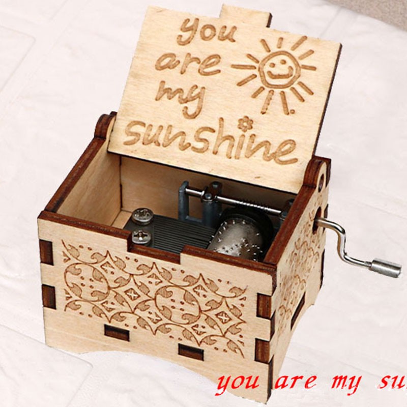 Wooden hand crank music box, you are my sunshine wood musical box, laser engraved hand crank classical box, birthday valentine's day.